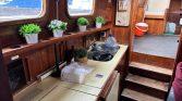 Interior: 1 cabine à proa com cama de casal. 1 cabine à popa com duas camas individuais. Cozinha/salão a meia-nau equipado com, Fogão e Forno. (ambos operacionais) Lava-loiça e WC completo. Salão superior de convés, oferecendo excelente luminosidade e visibilidade onde se encontra o Posto de comando.