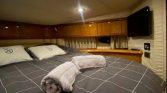 Interior: Bom salão com mesa de refeições, cozinha equipada, Suite à Proa com cama de casal, Wc e Suite na Popa com 2 Camas individuais e Wc.